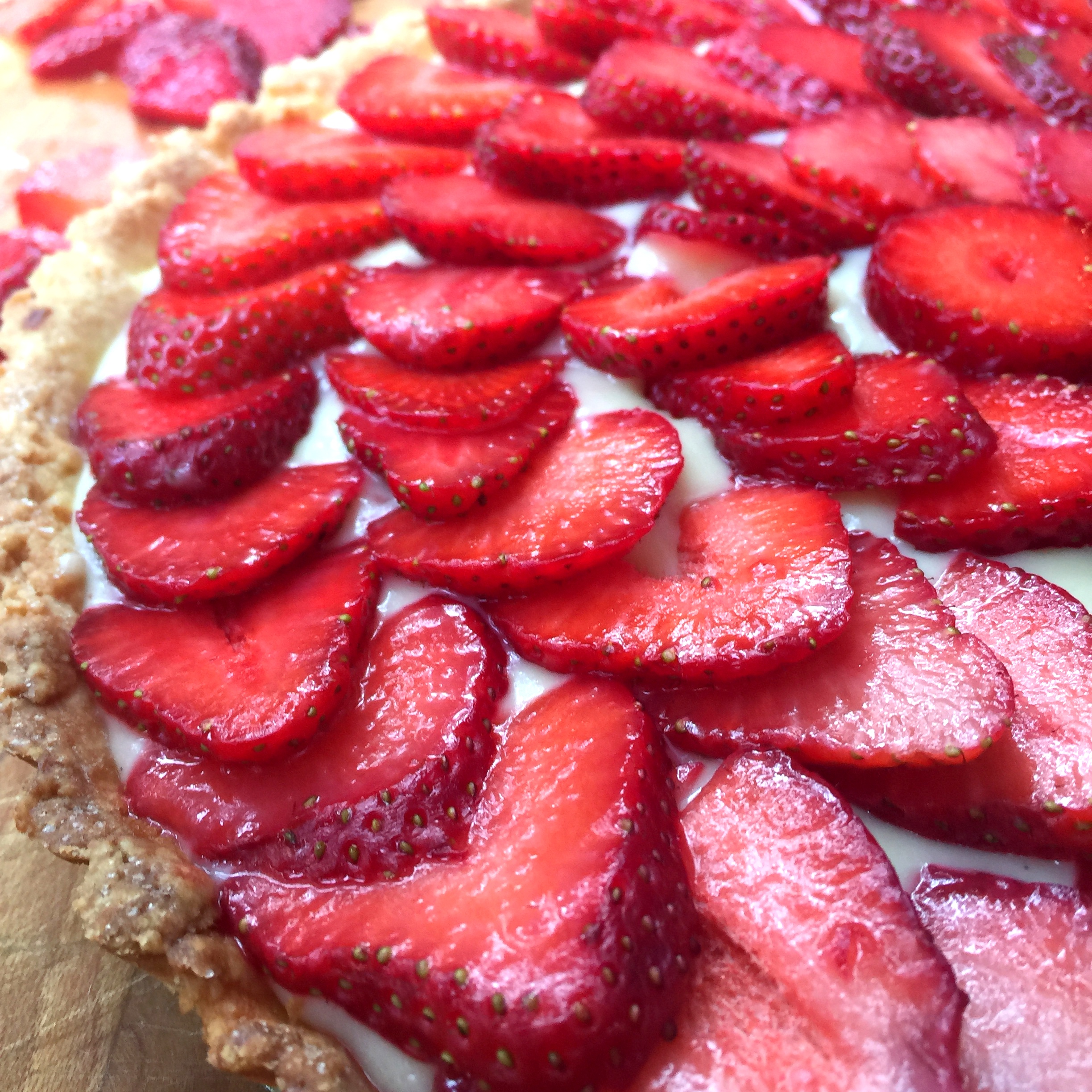 - 1/2cup sugarthe original recipe called for 3/4 which after tasting my tart with the fresh strawberries was determined to be too sweet. So add to taste based on the sweetness of the fruit.