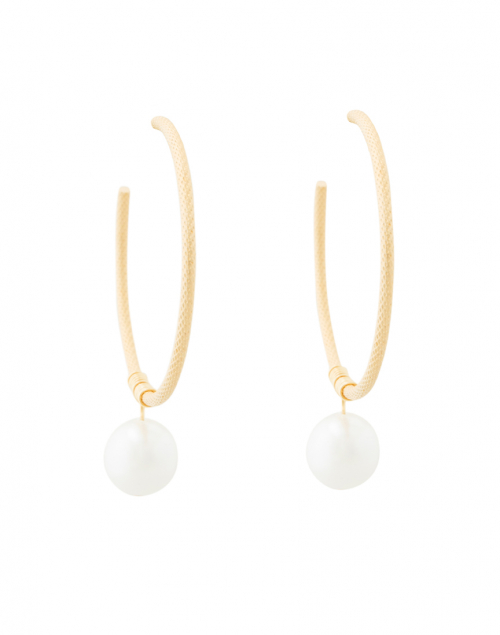 ~Deborah Grivas Pearl Gold Textured Hoop Earrings