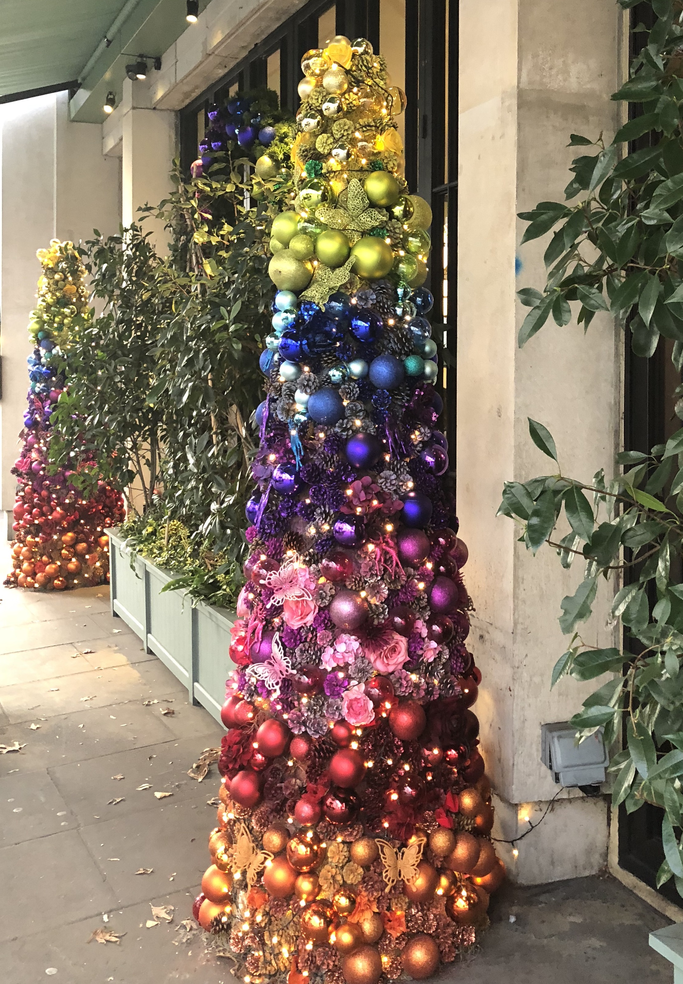 ~the entrance of The Ivy Kensington Brasserie decorated for the holidays~