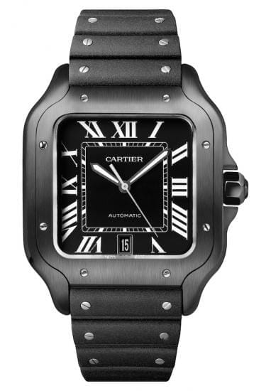 Today, the Santos de Cartier’s distinctive square shape seems timeless. The industrial touch of its eight screws on the bezel and its overall look may have initially been inspired by the symmetry of Parisian geometry stemming from the early 20th century and the angles and bolts presented by the Eiffel Tower, but is truly still contemporary thanks to its success in bringing a unique appeal that is not found in round timepieces. And now, the Santos is given the ADLC treatment, a form of diamond-like carbon coating that enhances the durability of the case, making it more resistant to scratches.