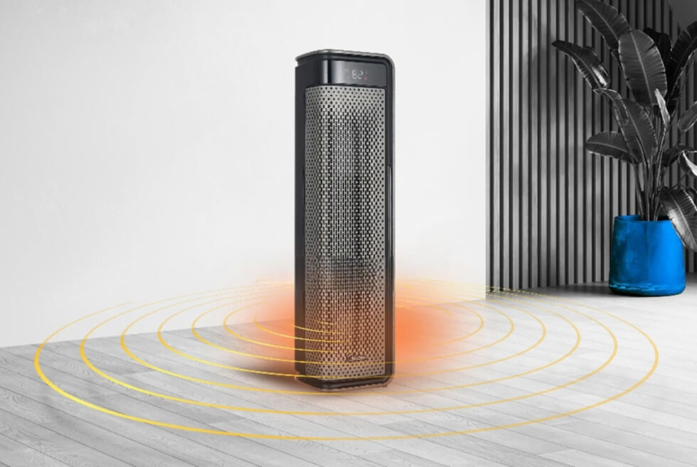 Midea's Dual-Flex Heater features an internal 60° oscillation that evenly and quietly distributes heat throughout a room.