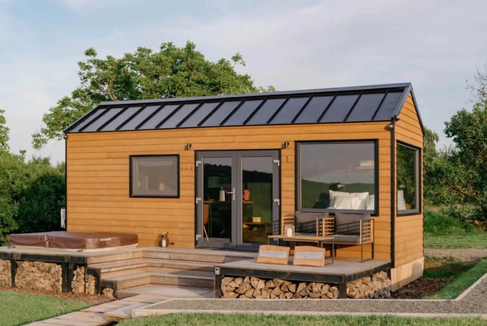 Tiny Amsterdam offers a luxurious retreat, with projector screens on the windows that turn the bedroom into an entertainment room.
