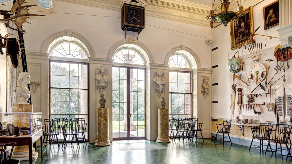 On of the most awe inspiring rooms is the Dome Room that sits under the dome inspired by the Temple of Vesta in Room as depicted by Palladio. It includes an oculus and half mirrored windows to hide parts of the house.